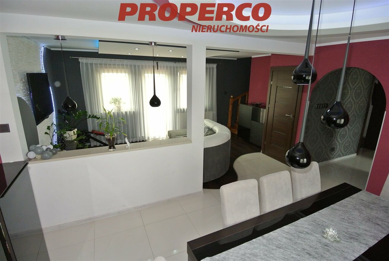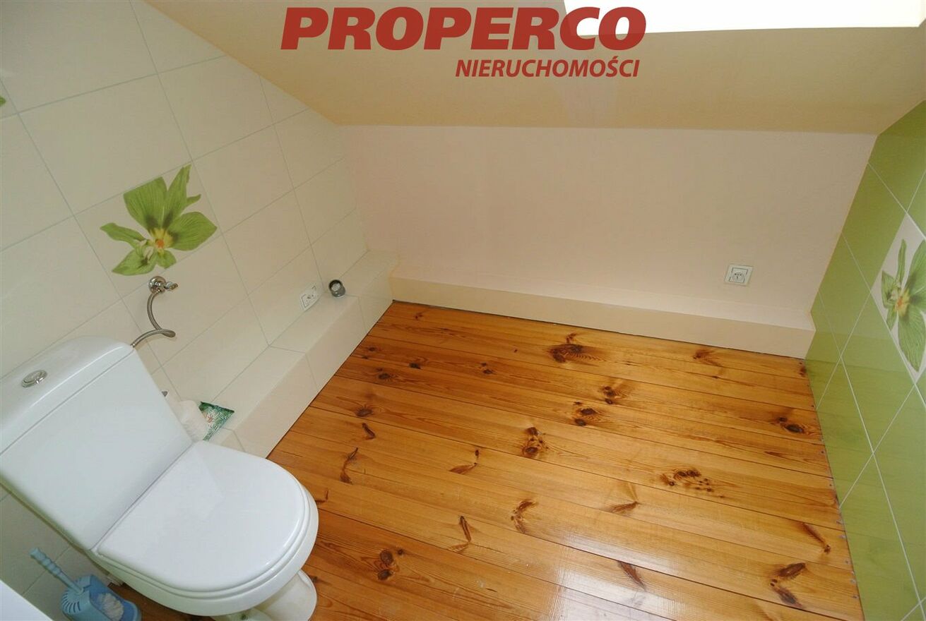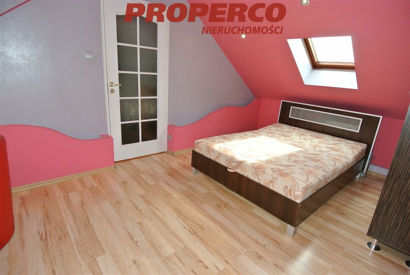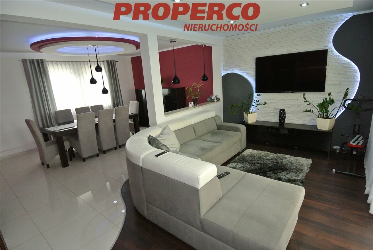 Na sprzedaż 4-pokojowy dom o pow. użytkowej ok. 120 m2, zlokalizowany w Radomicach, gm. Morawica, na ogrodzonej działce o pow. 1300 m2 . Nieruchomość zlokalizowana w cichej i spokojnej okolicy, w pobliżu lasy, jezioro.Dom wybudowany w 1996 roku, pokryty dachówką, ogrzewanie piecem gazowym dwufunkcyjnym, kanalizacja doprowadzona do budynku, dojazd drogą asfaltową. Pomieszczenia: